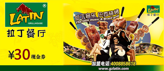 2013年12月03至12月30日,去拉丁餐厅荣建店或地王店消费后即可领取30元午餐现金券(数量有限、先到先得、送完即止)