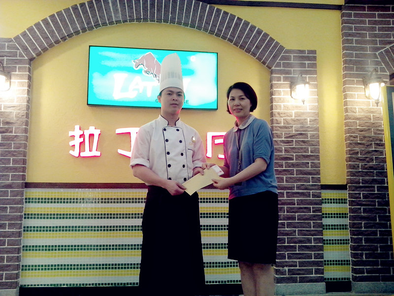 我们正佳店的伙伴们经过十天学习与奋战,于7月17号决出胜负,第一名得主是我们勇敢队,在公司的大力支持下给予1000元的奖励。 本次活动已完美落幕。过后我们管理层召开了总结会,会议上各抒己见,取长补短,总结经验,承诺在自己限定的时间内做出破框与改变,甚是感动,因为我要的效果已经出现了。我们的勇敢队队员们于7月19号将奖金给了我,要我代替他们将钱捐给公司员工爱心基金会,说要给拉丁这个大家庭奉献点绵薄之力,帮助真正有需要的伙伴。将钱接过来时我有些措手不及,被伙伴们的大爱感动不已,在我以往的思想范围内,小伙伴们是贪玩的,肯定会拿着这笔钱再去热闹一番,事实却是令我意想不到他们如此感恩,除了感动还是感动,因为我的心血没有白费,一直以来,无论伙伴们怎么对我,我都将伙伴们视为家人,毫无保留的教导,希望他们能天天向上,青出于蓝胜于蓝,这样才算我在拉丁管理上的成功,现在付出有了伙伴们行动上的回报,很让我欣慰,成就感十足,就像一位母亲看到孩子们长大了一样的感觉,这些是金钱无法衡量的,也不是三言两语可以表达完的,只能说,在拉丁我是幸福的,我会让这种幸福持续并传递,在往后拉丁的日子里,我会与伙伴们一起用行动写下更美的历史诗篇。