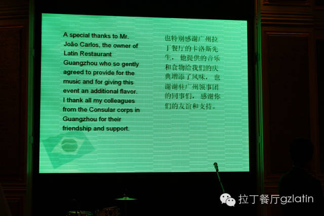 (巴西总领事约瑟莱萨先生发表讲话,同时也对提供美食的拉丁餐厅表示了感谢)