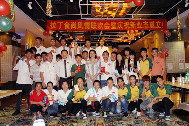 2014年9月28日下午,人资部高级经理廖春萍女士、拉丁事业部营运高级经理黄伟文先生以及品牌推广部一行人来到拉丁风情,除了感受新店带来的新气象外,还有一个更重要的任务,带去公司全体同仁的问候。