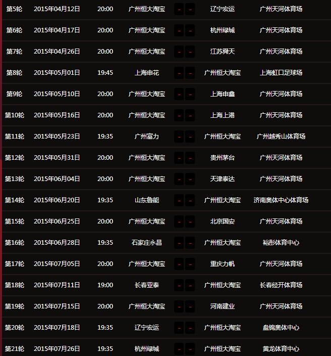 第1步: 密切留意 广州恒大淘宝足球俱乐部/广州富力足球俱乐部 两支球队的比赛情况;